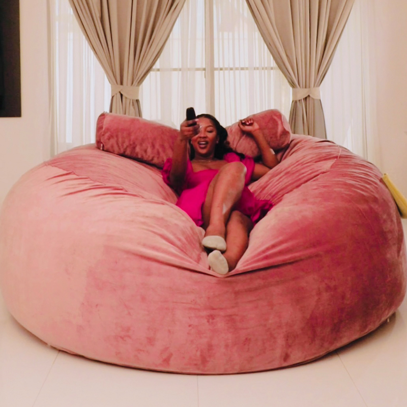 Get lost in this mammoth size bean bag with side pockets to stack up all you need for zoning out moment. This bean bag comes with a bolster pillow for cuddling or support. Dimensions: 40″H X 80″W. Premium soft velvet cover. Cover can be removed and washed