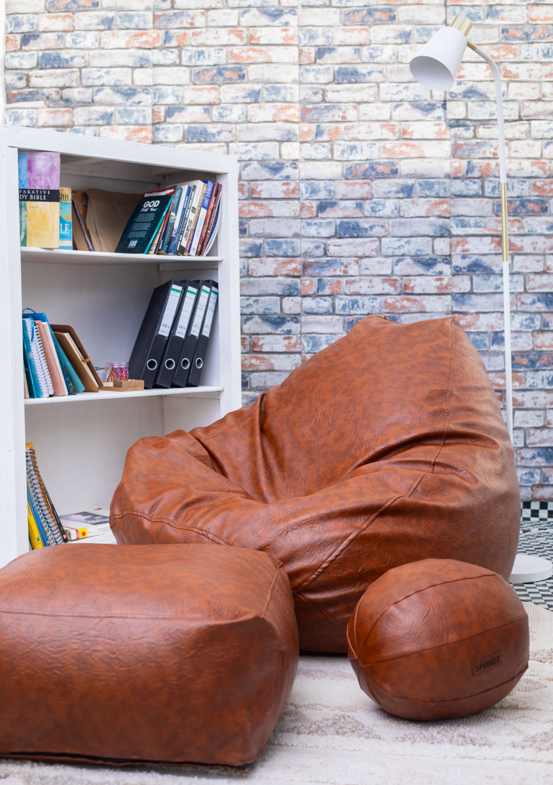 Brown Leather_: Our bean bag chair is crafted from high-quality brown leather, ensuring a luxurious look and feel.