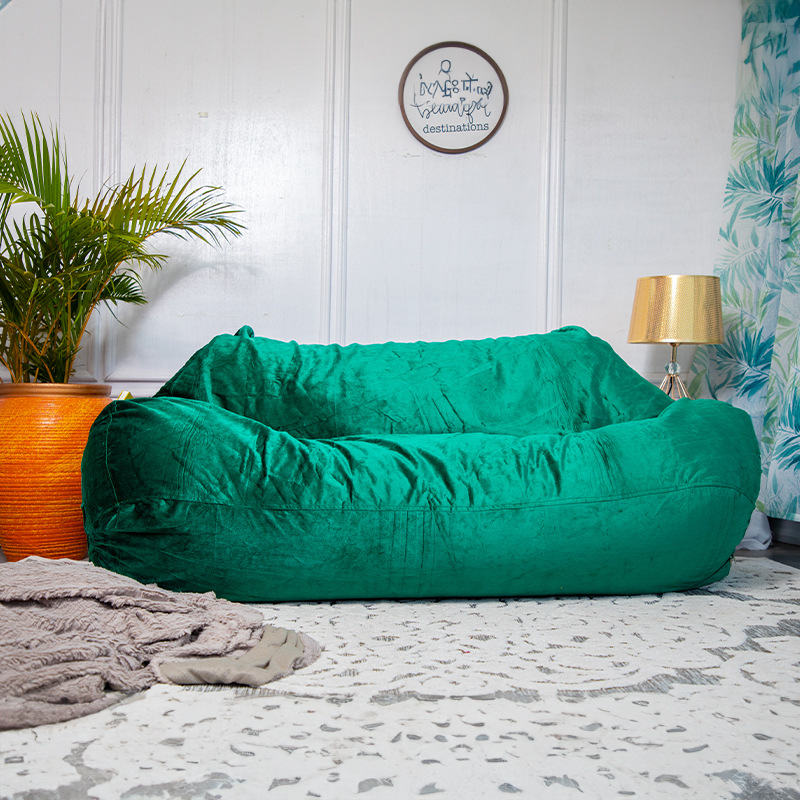 Nipa Nua means friendship and support. This bean bag seats 2 adults.When alone, you can also stretch yourself on it. It is unbelievably comfortable and has replaced the traditional sofa in many homes. The Nipa Nua has side pockets so you can easily have access to your remote control, magazines and accessories that aide in your zoning out moments. Dimensions: 44″H X 65″W. Premium soft velvet cover. Cover can be removed and washed